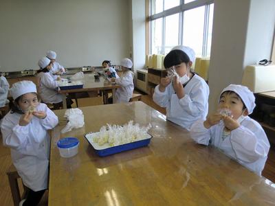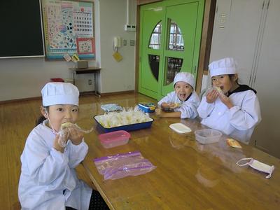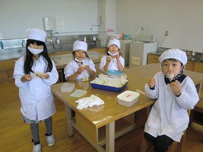 10月22日(木)に1年生が畑で収穫したサツマイモを使って茶巾絞りを作りました。もちろん,つくった後はみんなで「いただきまあす,」とてもおいしかったことが顔を見るとわかりますね。我々職員分も作ってもらいました。ごちそうさまでした!