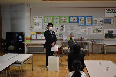 10月22日(木),JAさがえ西村山理事佐藤様,溝延支所長設楽様がお見えになり,5年生にごはん茶碗を贈呈してくださいました。佐藤様のご挨拶には,変化が激しい時代であっても,前向きに過ごしてもらいたい。そのためには何よりも健康が第1,健康のためにご飯をたくさん食べてほしいとの願いが込められていました。ありがとうございました。