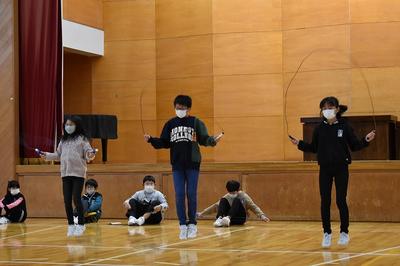 11月11日(水)にスポーツ委員会が縄跳びの技を発表しました。基本の前跳びから,交差跳び,二重跳びなど,全校児童に挑戦してほしい技でした。これから寒い季節で,室内運動も多くなります。ぜひスポーツ委員会が発表した技を上手にできるようになってほしいですね。