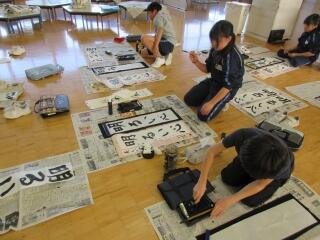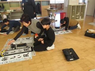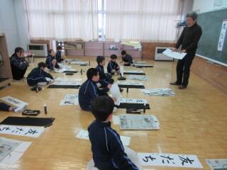 12月2週目から3周目にかけて、地域の書道の先生に来ていただき、書き初めの練習をしました。書き初め用の長い半紙に4文字から5文字を書くので、床に正座して練習をしました。どの学年も、書道の先生からのアドバイスを聞いて、真剣に取り組んでいました。1月8日、3学期始業式の日に、書き初めを行います。力作を期待しています。