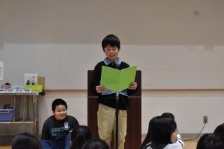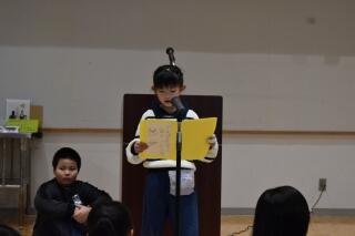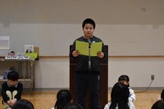 12月24日(水)、2学期の終業式を行いました。82日間という長い間、大きなけがや事故もなく、本当に良かったと思います。式では、1年生・3年生・5年生の代表児童が2学期の振り返りを発表しました。日常の授業はもちろん、相撲デイや持久走記録会、学習フェスタなどにどんな気持ちで取り組んだか、どんな目標を達成できたか、自分自身をしっかり見つめている様子が伝わってきて、とても素晴らしい発表でした。