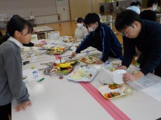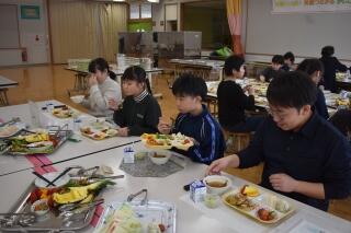 2月13日に、5・6年生がオードブル給食をいただきました。ハンバーグやフルーツ、サンドイッチにおにぎりなど、たくさんのメニューの中から、栄養のバランスを考えて盛り付け、おいしくいただきました。おかわりも自由で、お腹いっぱいになった子どもたちはとても満足そうでした。準備してくださった給食センターの皆さん、ありがとうございました。