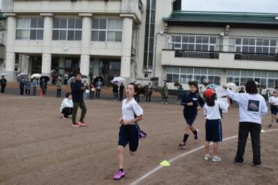 10月16日(木)に持久走記録会を行いました。1年生から6年生まで、この日に向けて、朝マラソンや体育の授業で練習してきました。また、昼休みに自主的に走っている子もいて、感心しました。当日は、いまにも雨が降りそうな天気で、少し小雨が降ったりもしましたが、予定通り実施できました。記録が伸びたという子も多く、苦しくてもがんばる子どもたちの姿は素晴らしかったです。応援に来てくださった保護者の皆さん、地域の皆さん、ありがとうございました。