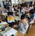 9月3日の発表朝会は、1年生の発表でした。1年生は国語「おむすびころりん」を音読劇にしました。長いお話なので場面ごとに区切ってビデオで撮影していました。それを全校生に大型モニターで見せてくれました。歌に振り付けをして踊ったり、大きな声でセリフを読んだりするかわいらしい姿に、見ていた上級生の表情もやさしい笑顔になっていました。生き生きと表現する1年生の姿を見て、11月1日の学習フェスタではどんな発表を見せてくれるか、とても楽しみになりました。